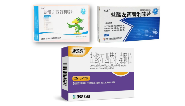 市面上比較常用的左西替利嗪包括華邦制藥的“迪皿”、九典制藥的“暢然”、康芝藥業(yè)的“康芝泰”鹽酸左西替利嗪顆粒等等。