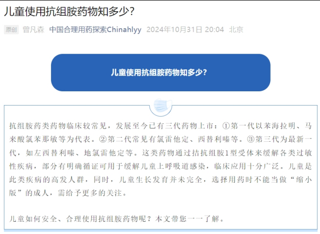 針對(duì)兒童如何安全、合理使用抗組胺藥物,國(guó)家藥品監(jiān)督管理局主管的核心期刊《中國(guó)合理用藥探索》官方微信公眾號(hào)曾發(fā)布《兒童使用抗組胺藥物知多少?》一文給予了指導(dǎo)建議。其中第三代抗組胺藥物代表藥物——鹽酸左西替利嗪顆粒憑借安全性、有效性、劑型適宜、臨床使用經(jīng)驗(yàn)豐富等優(yōu)勢(shì),被推薦為緩解兒童各類過(guò)敏性疾病和上呼吸道感染卡他癥狀的建議優(yōu)選藥物。