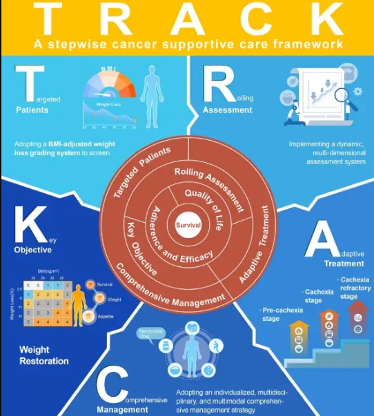 夏青教授表示,既往臨床中通常只關(guān)注患者的抗腫瘤治療,而忽視了對(duì)其進(jìn)行營養(yǎng)管理、疼痛管理和心理支持等。為此,她強(qiáng)調(diào)「臨床應(yīng)加強(qiáng)對(duì)厭食、惡病質(zhì)和肌少癥的篩查和關(guān)注」,并希望未來能將 TRACK 理念深入落地臨床實(shí)踐,以更好地造福腫瘤患者。